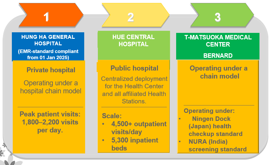 - Benchmarking and learning from existing Vietnamese hospital management software and international Hospital Information Systems.